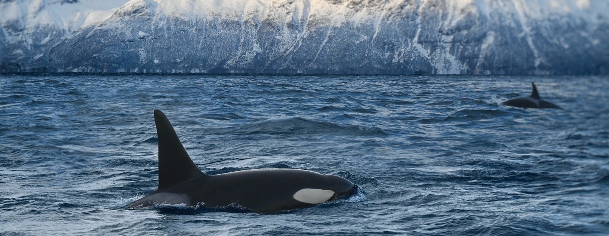 If you’re travelling in Northern Norway in the winter, your cruise ship will sail slowly along the fjords of the Lofoten Islands and Vesteralen on the lookout for whales.
