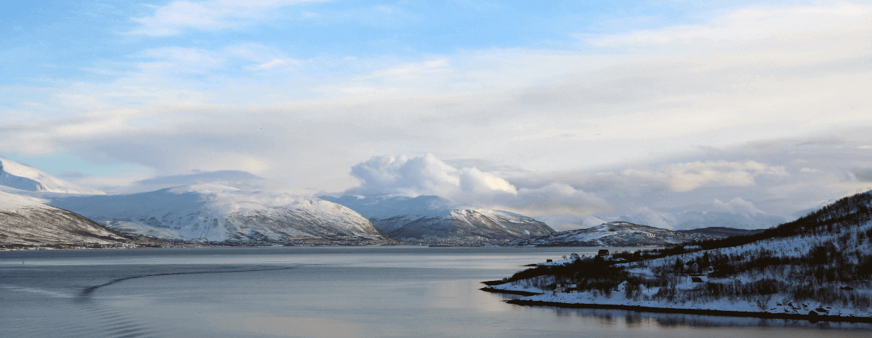 Located on an island in the Tromsøfjord, about 350 km north of the Arctic Circle, Tromsø is a city in northern Norway. In fact, Tromsø is the largest city in northern Norway and is surrounded by mountains and fjords.