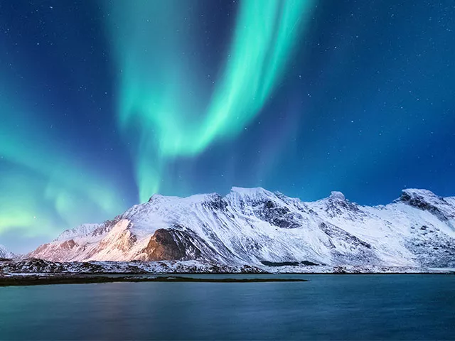 Sail far into the remote Arctic Circle at a time of year when the Northern Lights are more likely to appear. Gentler temperatures than the depths of winter, together with lingering hours of darkness, can create ideal conditions for comfortable aurora viewing from the ship’s open decks or the cosy warmth indoors. Sortland, set within the beautiful Vesterålen archipelago, reveals tranquil forests and dramatic fjords to frame your explorations, while exhilarating husky sledding across untouched snow and glimpses of reindeer in the wild capture the true spirit of the region. Meanwhile, an overnight stay in Harstad adds further possibilities, from snowshoe hikes by day to an evening spent seeking the elusive aurora.