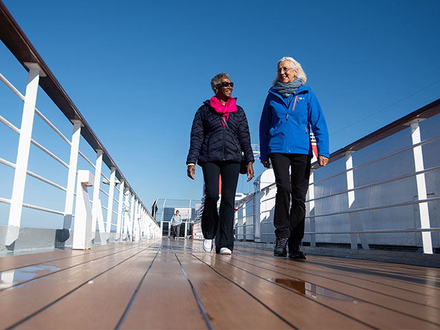Each ship also has a quiet library – perfect for catching up on the latest read from our Book Club – and cosy corners for coffee and conversation. For active relaxation, try yoga or Pilates in our ocean-view fitness centres.