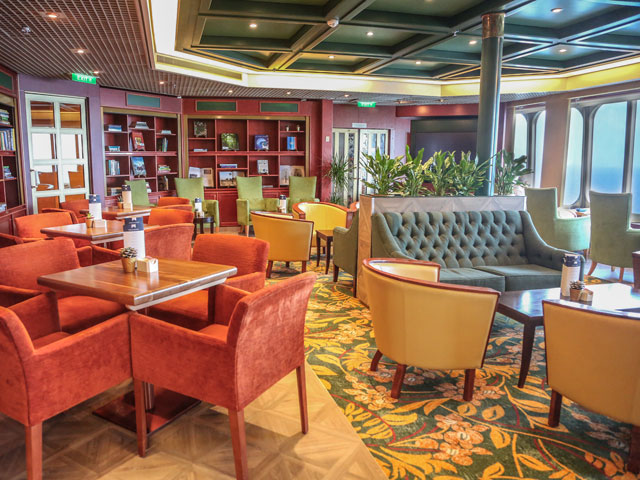 The Bookmark Café is the perfect spot to relax and enjoy your choice of speciality coffee or tea. Perhaps an Earl Grey or warming latte in the morning, or a delicious hot chocolate, topped with cream and chocolate after a busy day ashore; accompanied by a mouth-watering selection of handmade chocolates and freshly baked cakes and treats. Take advantage of our fantastic Bookmark Bestseller card, which you can either pre-order - and it will be added to your cabin account - or buy once on board. For just £25, you can choose from a selection of hot drinks, including coffees, teas from the Rare Tea Tasting company, or a luxury hot chocolate, accompanied by a bag of delicious truffles. Close to the library, there's an extensive range of both fiction and non-fiction books for you to select and enjoy with your daily coffee.