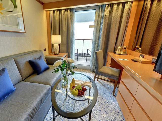 The Balcony Suites on Borealis feature all the amenities and comforts guests need during their stay, and provide ample space in which to relax, both indoors and outside on a private balcony.