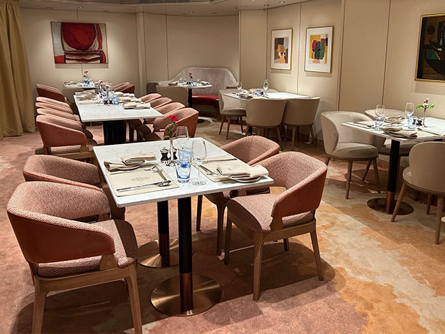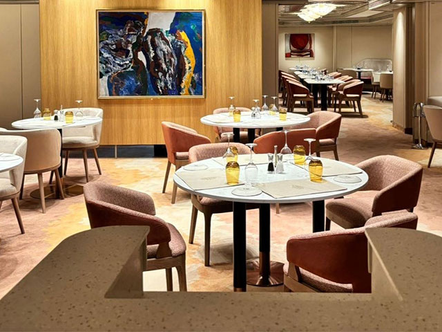 The View restaurant has a welcoming feel and beautiful views of the ocean provided by its large windows, and is the perfect venue for casual, self-serve dining with table-service drinks (from Janaury 2026) for those who feel they would prefer a more relaxed dining experience. Offering all kinds of delicious breakfast, lunch and dinner options, plus a tasty selection of complimentary afternoon teas with sandwiches, scones and tempting cakes, all baked on board. Treats of the Region dishes are also available, which are local to the destinations you are visiting, so there’s plenty of opportunities to sample something new.